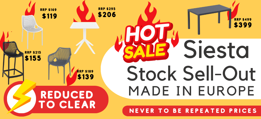 Attention outdoor living enthusiasts! We’re having a hot sale on our Siesta range to make way for exciting new arrivals. Enjoy never-to-be-repeated sale prices on this beloved collection. These pieces won’t be restocked, so this is your last chance to own a piece of outdoor furniture excellence.